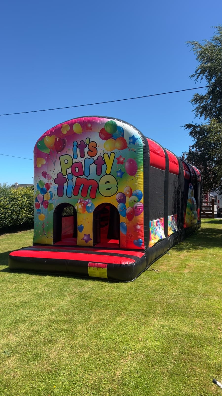 Don't just throw a party, create an unforgettable experience for your guests with our Party Time 42ft Obstacle course featuring a big slide and crazy obstacles 🎊. Whether it's for boys, girls, or all ages, this covered obstacle course is sure to add a thrill to your event